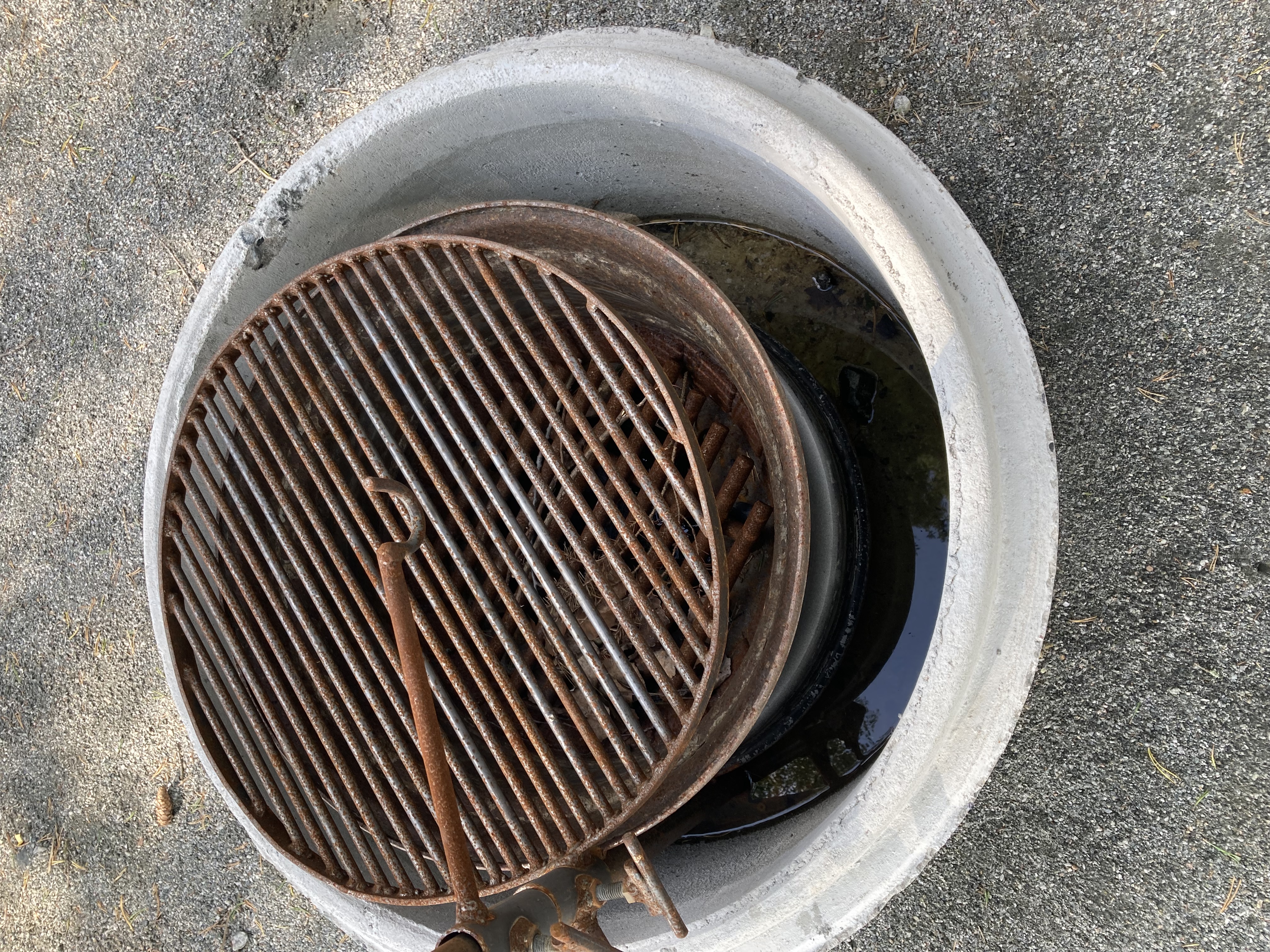 Luuniemelle rakennetun nuotiopaikan betonirenkaan suunnittelu jäänyt puolitiehen, betonirengas kohta täynnä sadevettä. Kuva